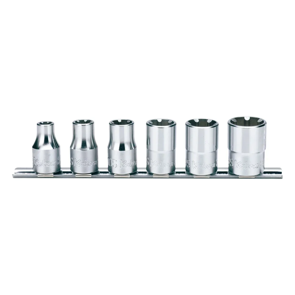 3/8″ 6-kant Gelenk-Einsätze (lang), 8-teiliger Satz auf Halteschiene
