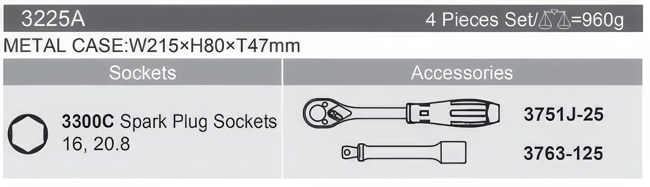 3225A SET Metallgehäuse: B215 x H80 x T47 mm 960 g